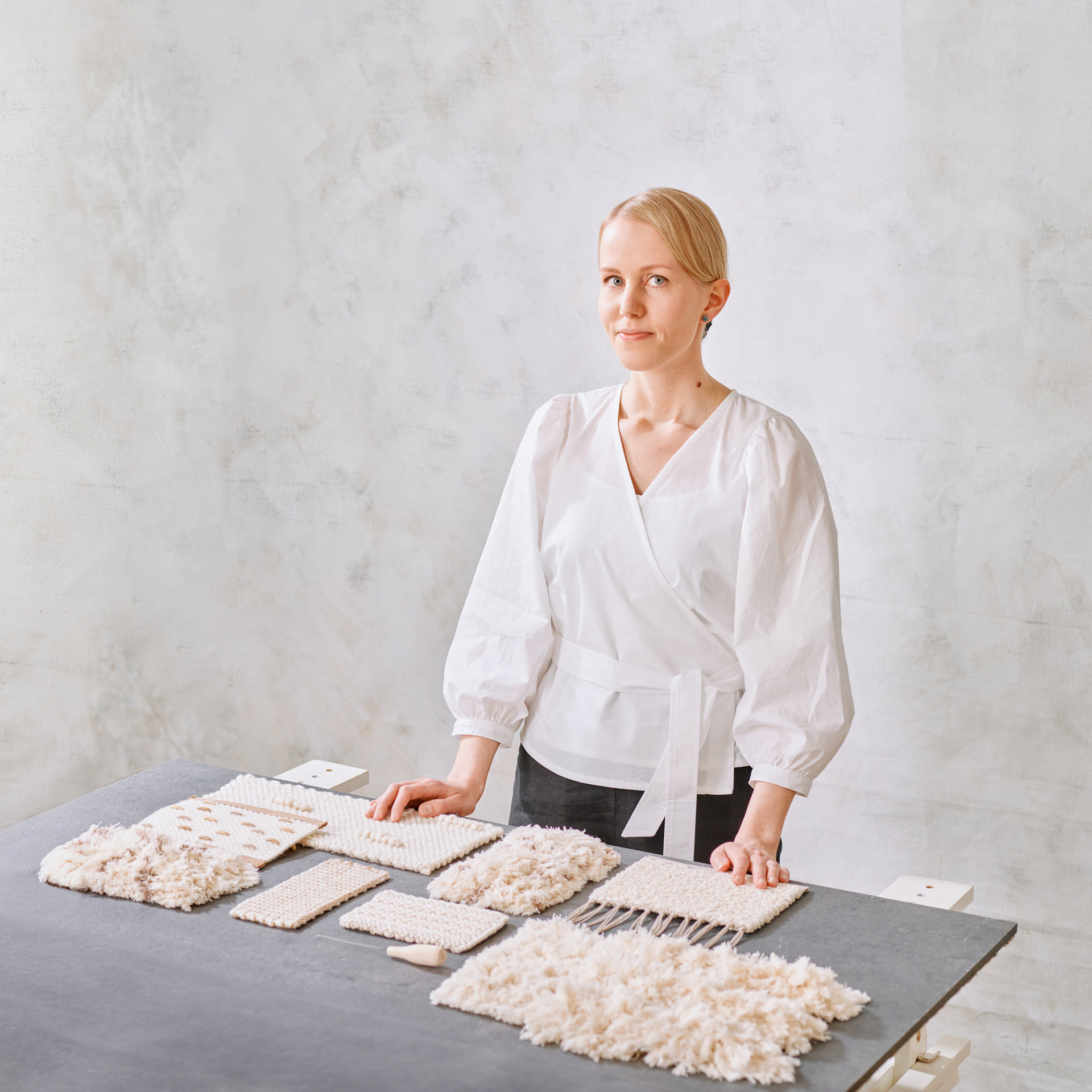 From abstract ideas and drawings to haptic experiences – I sample woven and knotted designs with my countermarch loom.